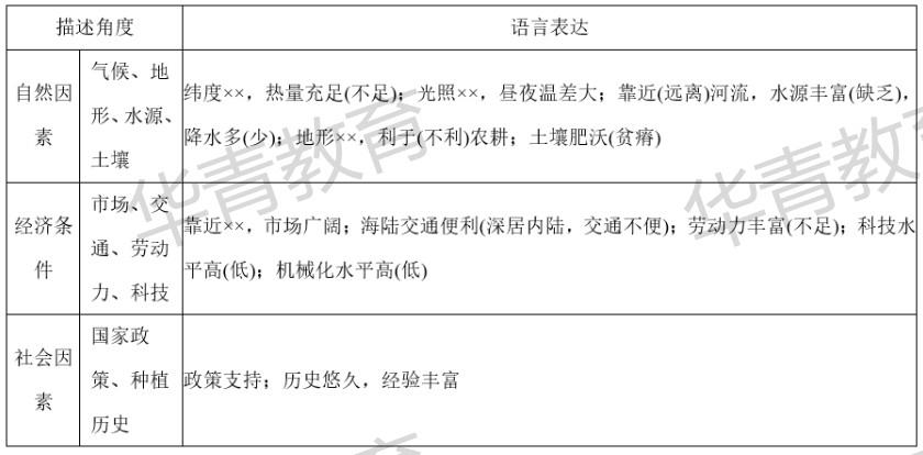 答题技巧:固定两步走,先想自然原因(地气水土生),再想人为原因(政策、交通、市场、劳动力)。