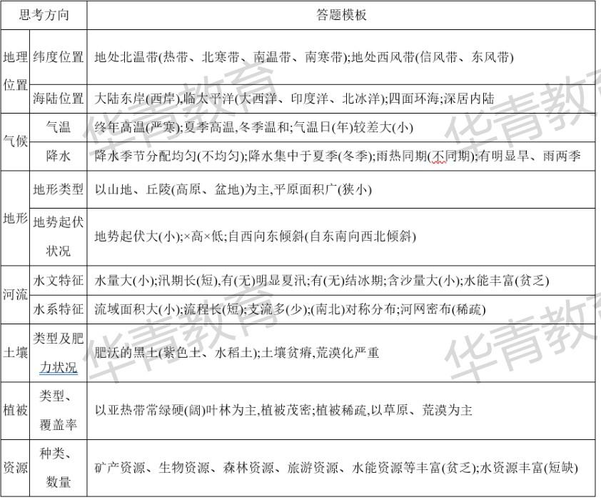 常考地形、气候、水文、产业特征,很多孩子上来就乱写,没有条理。