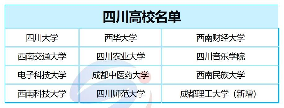 重庆大学,重庆邮电大学,重庆交通大学,重庆医科大学,西南大学,重庆师范大学,西南政法大学,四川美术学院,重庆工商大学