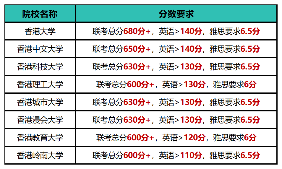 香港的八所公立大学(港大、港科大、港中文、城大、理工、浸会、岭南、教大)及澳门的高校(澳大、澳科大等)均接受以港澳台联考成绩进行申请,但招生方式与内地高校完全不同。