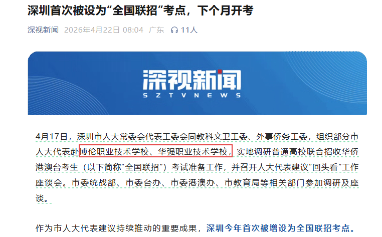 基于官方新闻的严谨性,基本可以推断,2026年港澳台联考深圳考点,大概率就是博伦职业技术学校和华强职业技术学校。